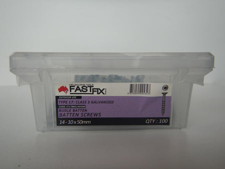 The Bugle Batten Screw 14G-10 x 50mm (Pack of 100) is a strong and reliable timber fastener designed for a clean finish and secure hold. With a bugle head that self-embeds without damaging the timber surface, a coarse thread for maximum grip, and a Type-17 self-drilling point to reduce the need for pre-drilling, these screws are perfect for battens, framing, fencing, and general timber construction. The Class 3 galvanised finish provides excellent corrosion resistance, making them suitable for both indoor and outdoor applications. Supplied in a convenient pack of 100, they’re ideal for smaller projects or on-site use.
