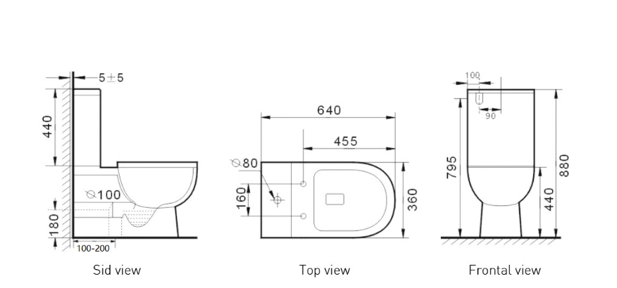 Wall Faced Rimless Toilet Suite with Bottom Right Hand or Back Inlet Connection