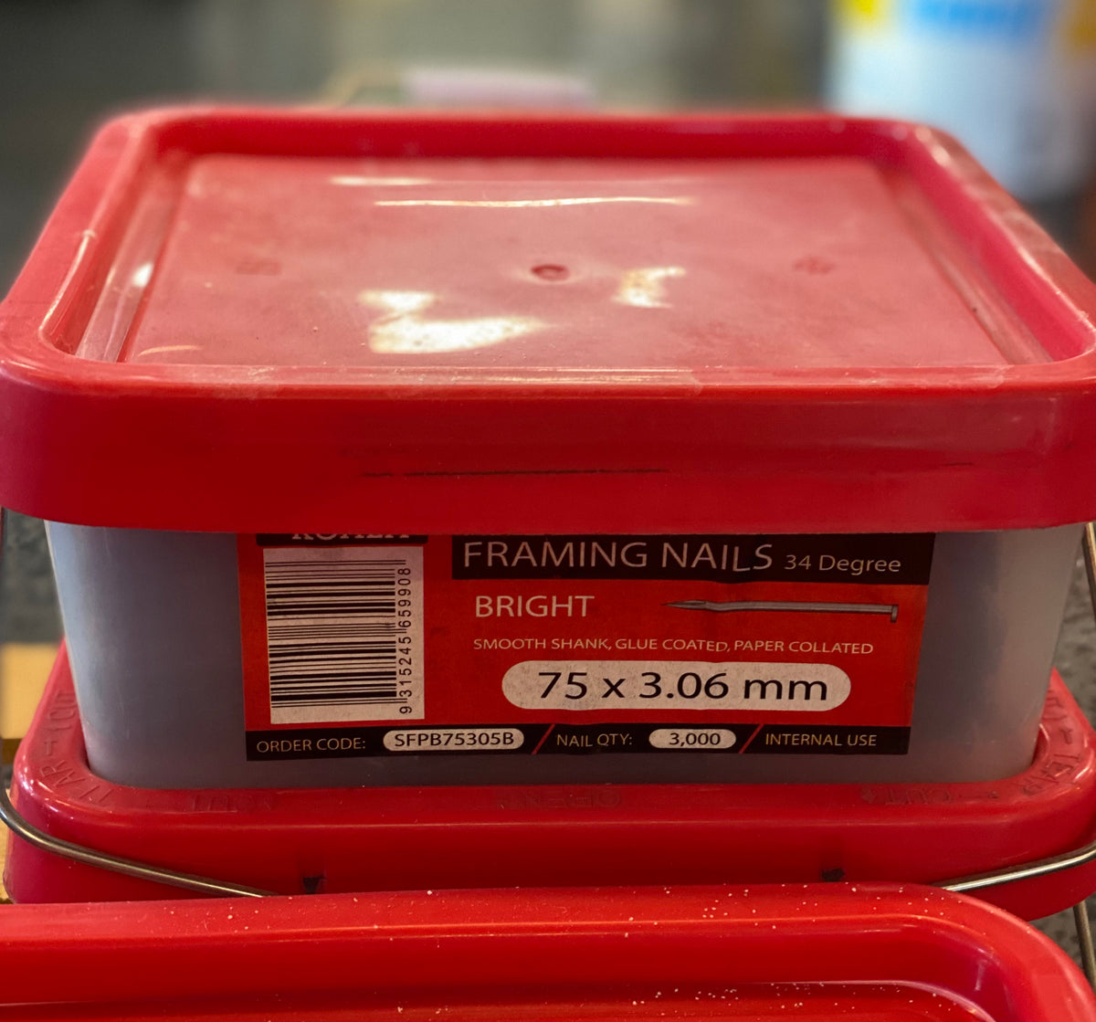 The Framing Nails Bright 75 x 3.05mm (3,000 Pack – Code: SFPB75305B) are heavy-duty nails designed for secure timber framing and construction applications. Manufactured from high-strength steel with a smooth bright finish, they provide excellent holding power in softwood and hardwood framing. Measuring 75mm in length and 3.05mm in diameter, these nails are compatible with most standard framing nail guns, making them ideal for high-volume use on site. Supplied in a bulk pack of 3,000, they offer outstanding value for builders and contractors handling large-scale projects.