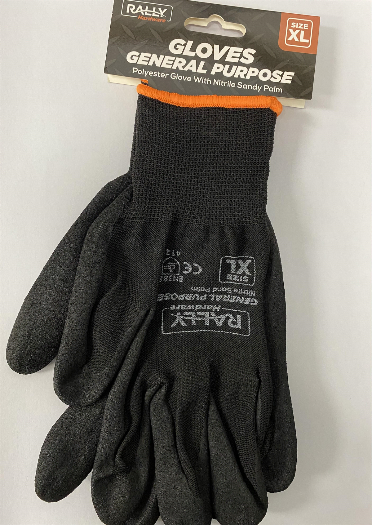 Protect your hands with the GLOVE-WORK G/PURPOSE XL BLACK. These work safety gloves in black provide maximum durability and protection for any job. With a comfortable fit and versatile design, these gloves are perfect for any work environment. Keep your hands safe and secure while getting the job done.