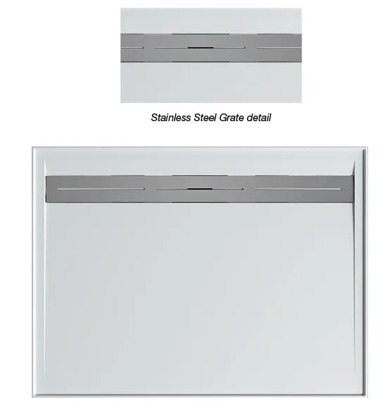 A low-profile, solid cast Stonelite™ shower base designed for modern bathrooms. The 2UR900R features a rear-positioned stainless steel linear grate, gelcoat surface for easy cleaning, and a tile flange on all four sides for secure installation.